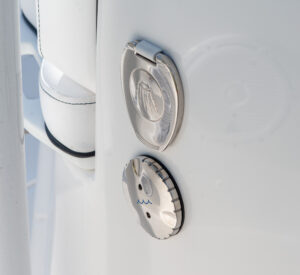 Hulls and decks are gel coated, then a vinyl ester barrier coat is sprayed on all hulls to prevent osmotic blistering from the waterline down. We also gel coat all capping knuckles and hull sides to enhance the profile.