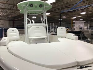 We have an individual, one-piece finished and gel-coated stringer system for each model. The stringer system is attached to the hull with Methacrylate for a strong chemical bond. All stringer systems are also completely gel coated to prevent mold and make them easier to maintain .